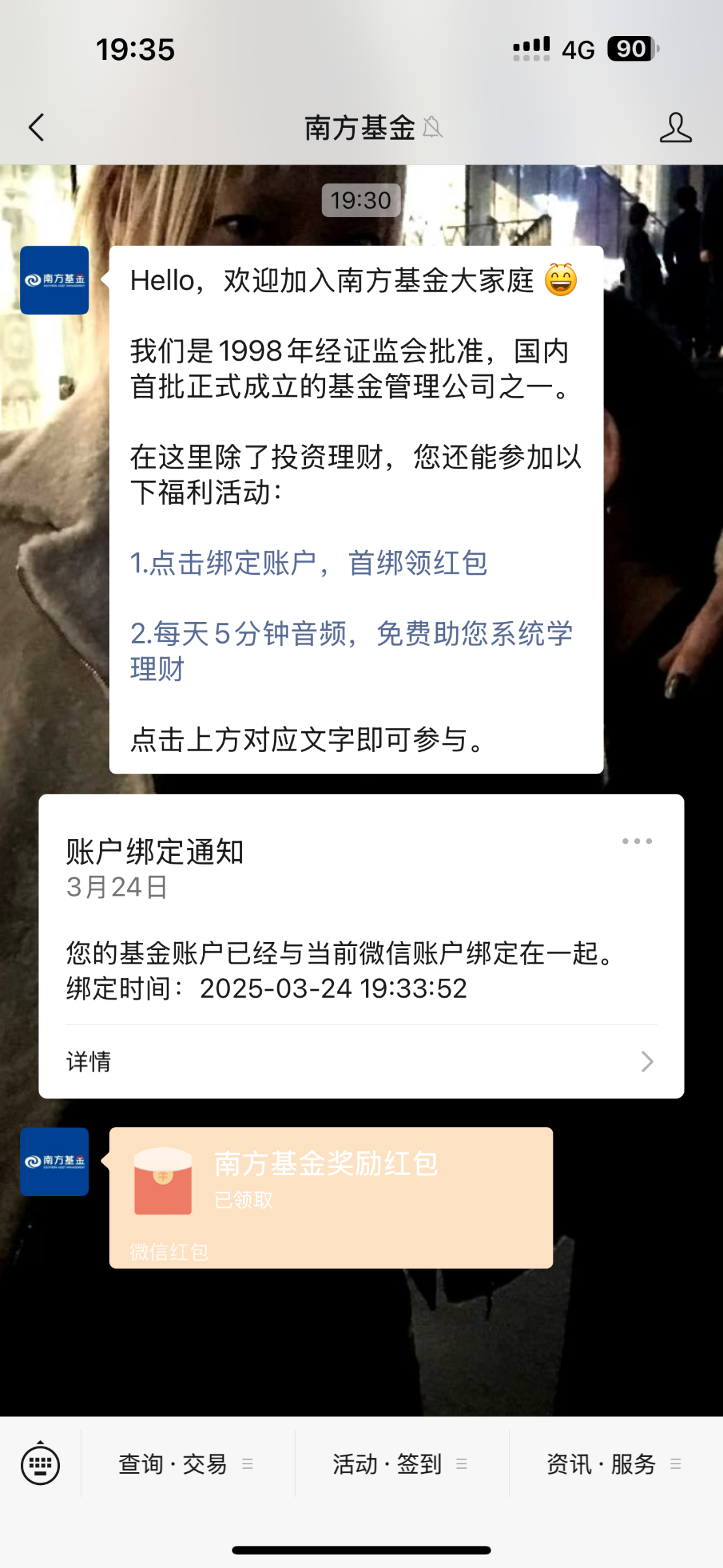 微信上面搜索南方基金公众号,查询交易栏选