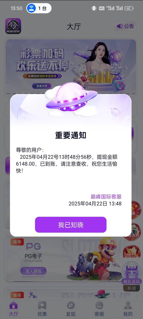 • 置顶评论 存款1000元以上/累计3天/,留言账户。过审最高888。不过审,反彩金88-188不等,5月1日-5月10日之间达标的,5月16日-5月19日联系POP进行返现处理,过期不候。