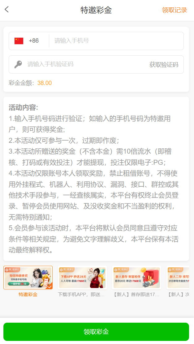 ✅【特邀短信】自行使用常用手机号码,碰瓷38元特邀彩金,自助,链接需要通过广告贴链接,否则不负责!