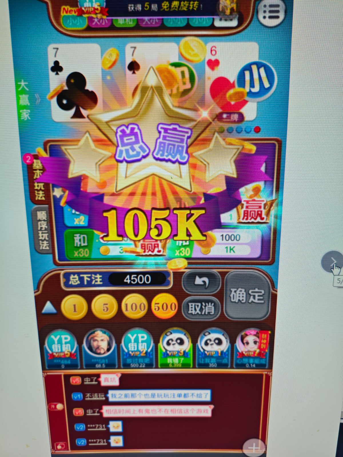 赢钱的时候 亢奋 脑子是不正常的 我用1k一周打上二十几个 期间有事所以提了出来 没卵用 最后还不是三两天全部送回去 就是体验个过程 这种台子早都把握好你的心里了 知道你还会奈不住一定会冲回来 他们后台专门评估的 如果你是那种偶然炸富 爆分的 一次性玩家 绝对不会给你出的 给你出就不怕你赢 早早晚晚杀死 你就算这次下了 不出一个月 或者几个月一样送回去