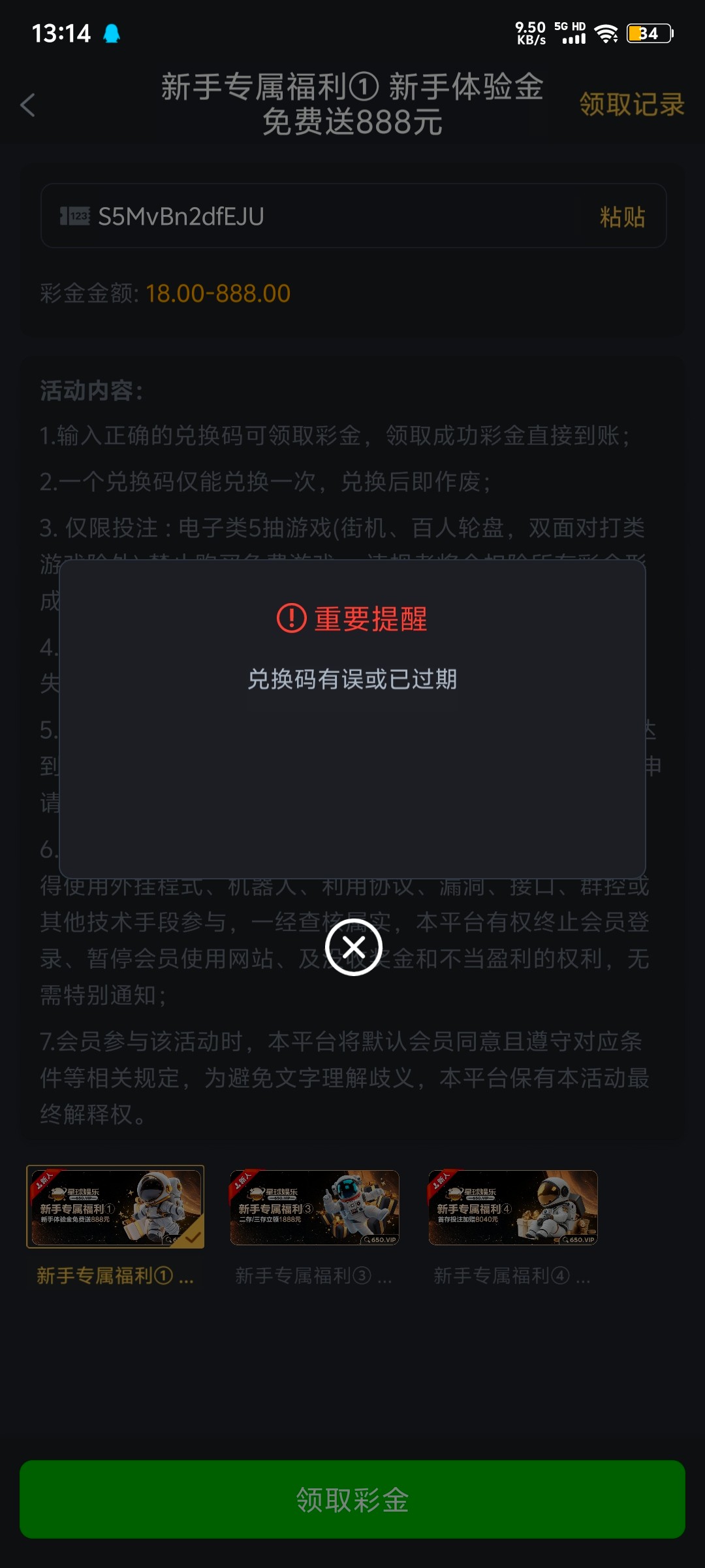 免费彩金代码,出款需要存款相同金额,完成一倍流水,才可以提款。