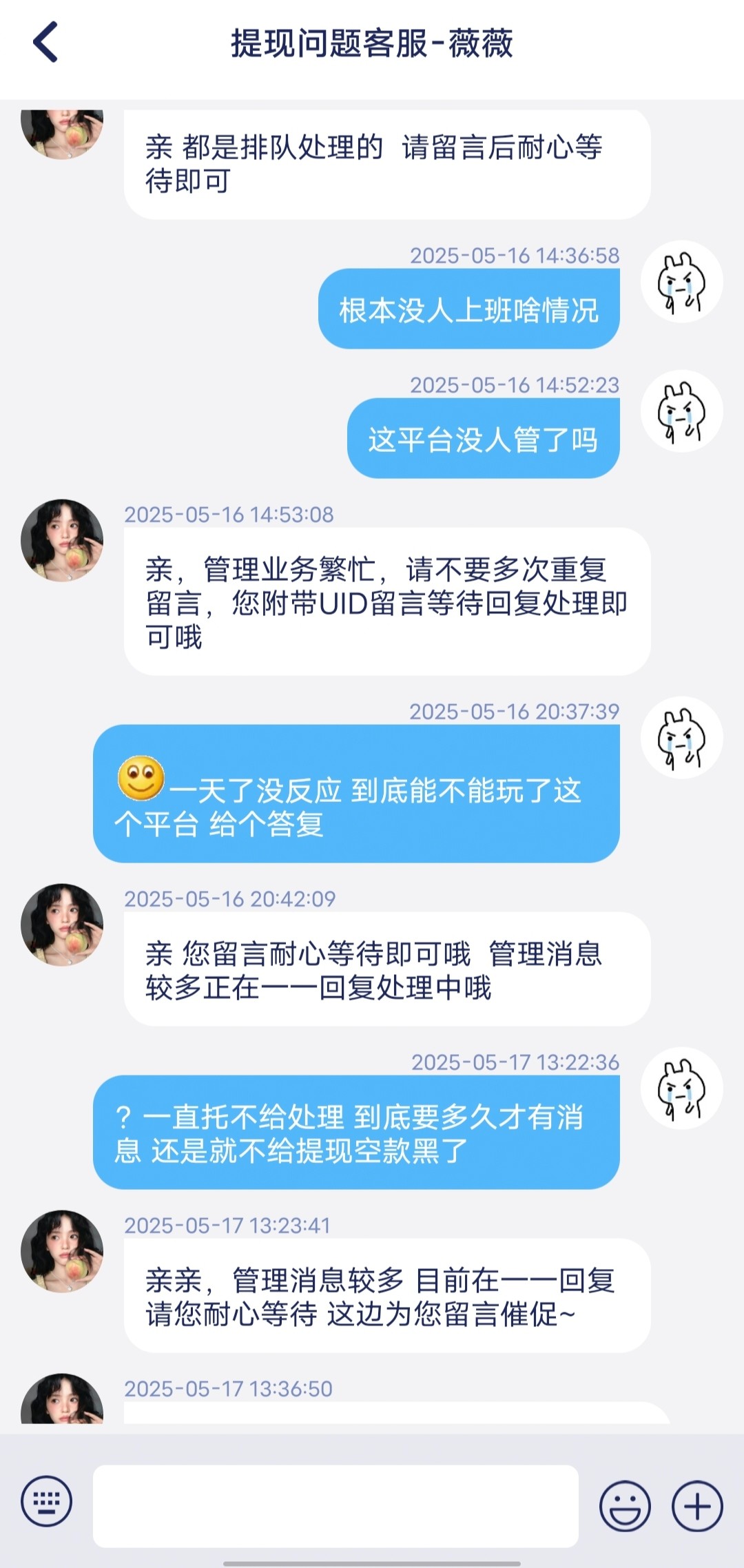 问客服一直托 说加旺旺留言处理几天还没已读 有人遇到过没 是不是没戏了