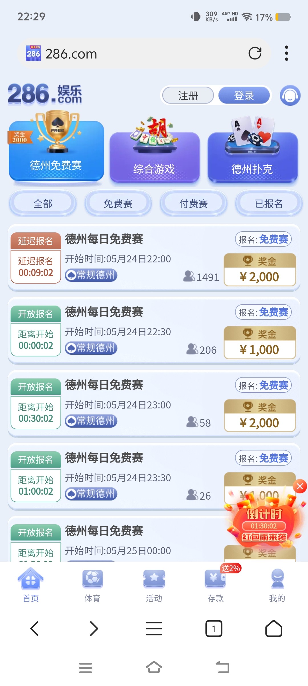 注册后可以参加免费赛,前50名得20元,还可以免费参加一次付费赛,前100名得50~5000多元,网子 286.com