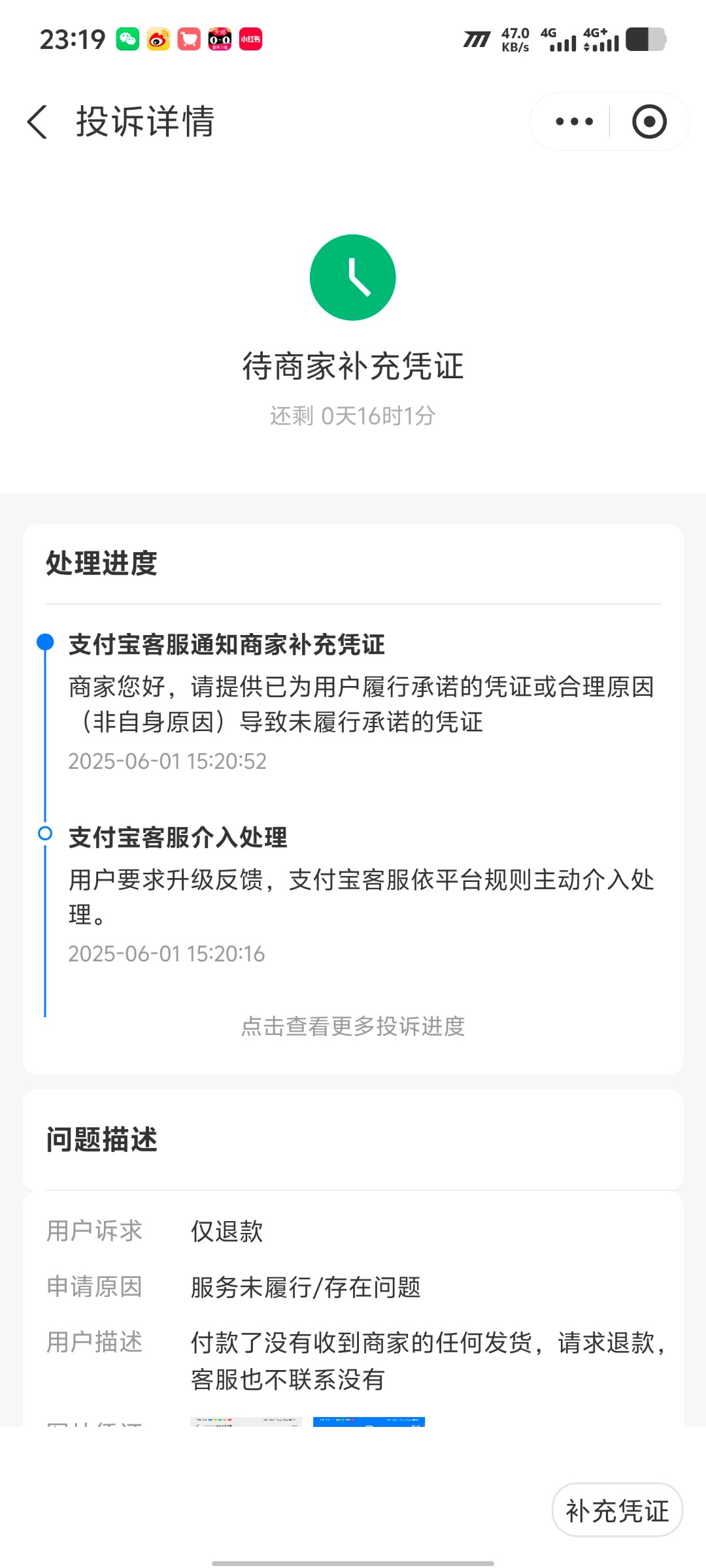 只要是带小程序的直接去提交没有发货,包成功的因为他根本就没有证据给你发过货