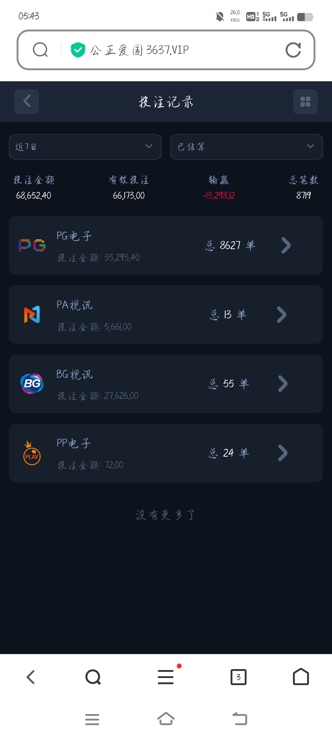 这几天一个00.vg金沙死了7000,3637威尼斯输了1.3w,上半个月星球死了1.6w,回不去了现在才20岁唉负债累累还是一个大学生,累了,麻将20进去给5块,10块全部空,女王20给18块,足球20给10块,真人个个8死9没意思了兄弟们站不起来了躺下