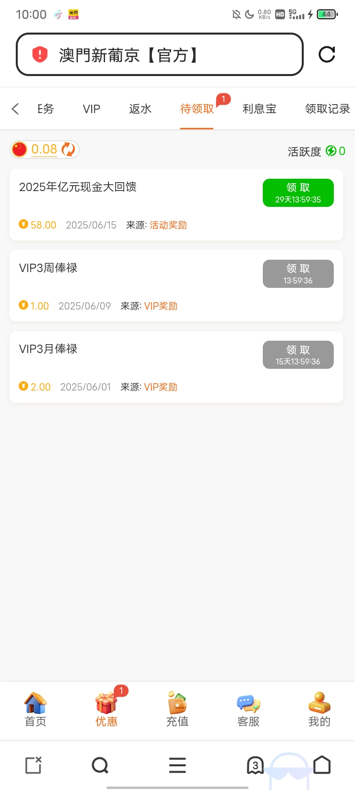 每月15日会员日,一个月内有投注的别忘了上线领取,领了58 网址1959.com