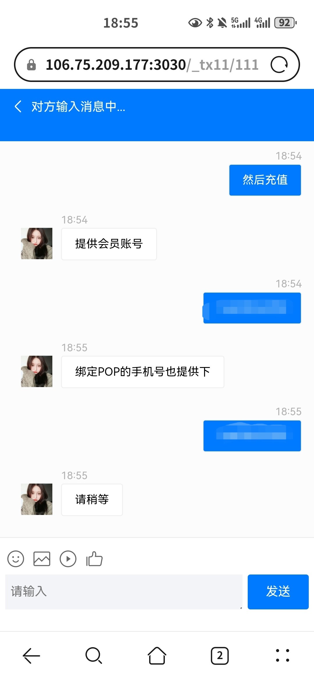 上去就找他要验证码百分百不给,会让充值,所以要注意话术,忽悠!