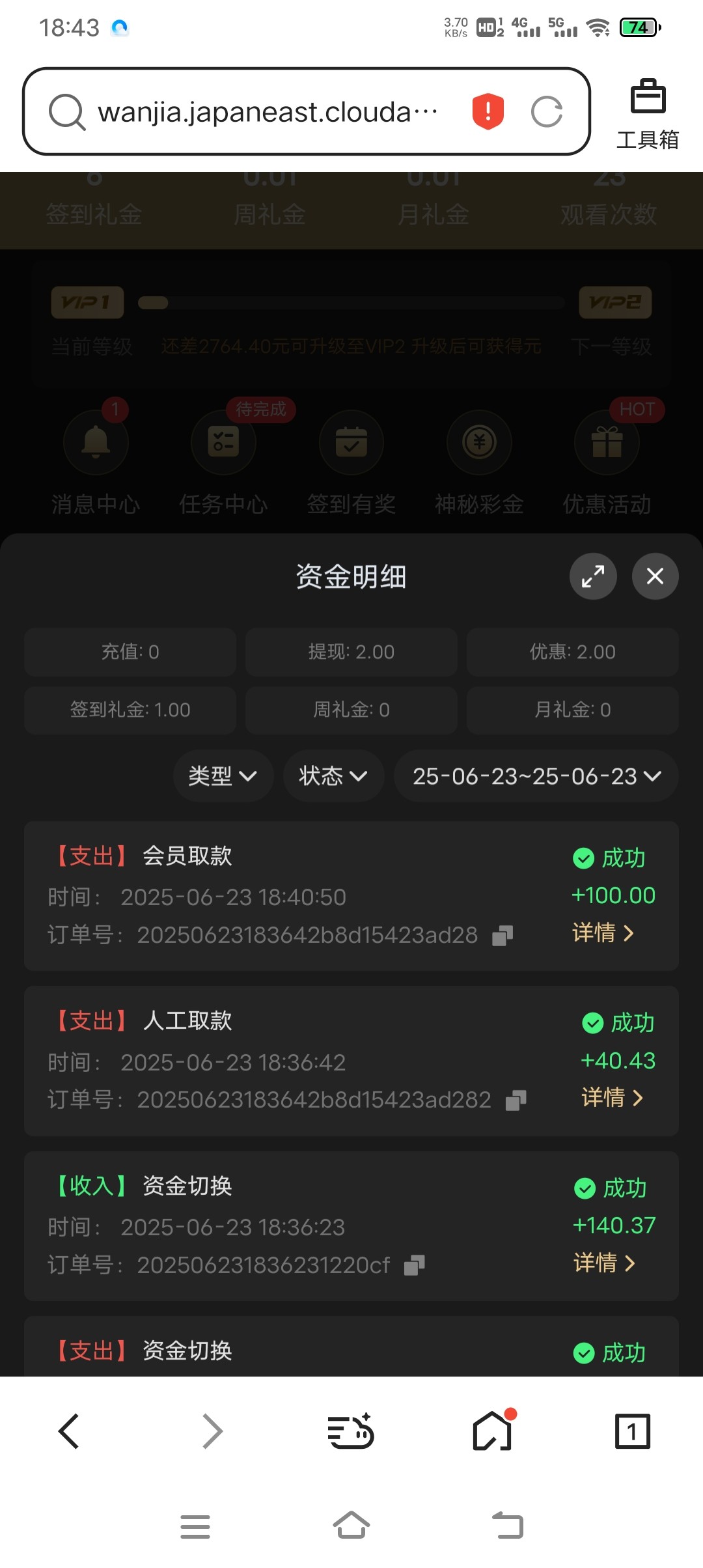 已到账100