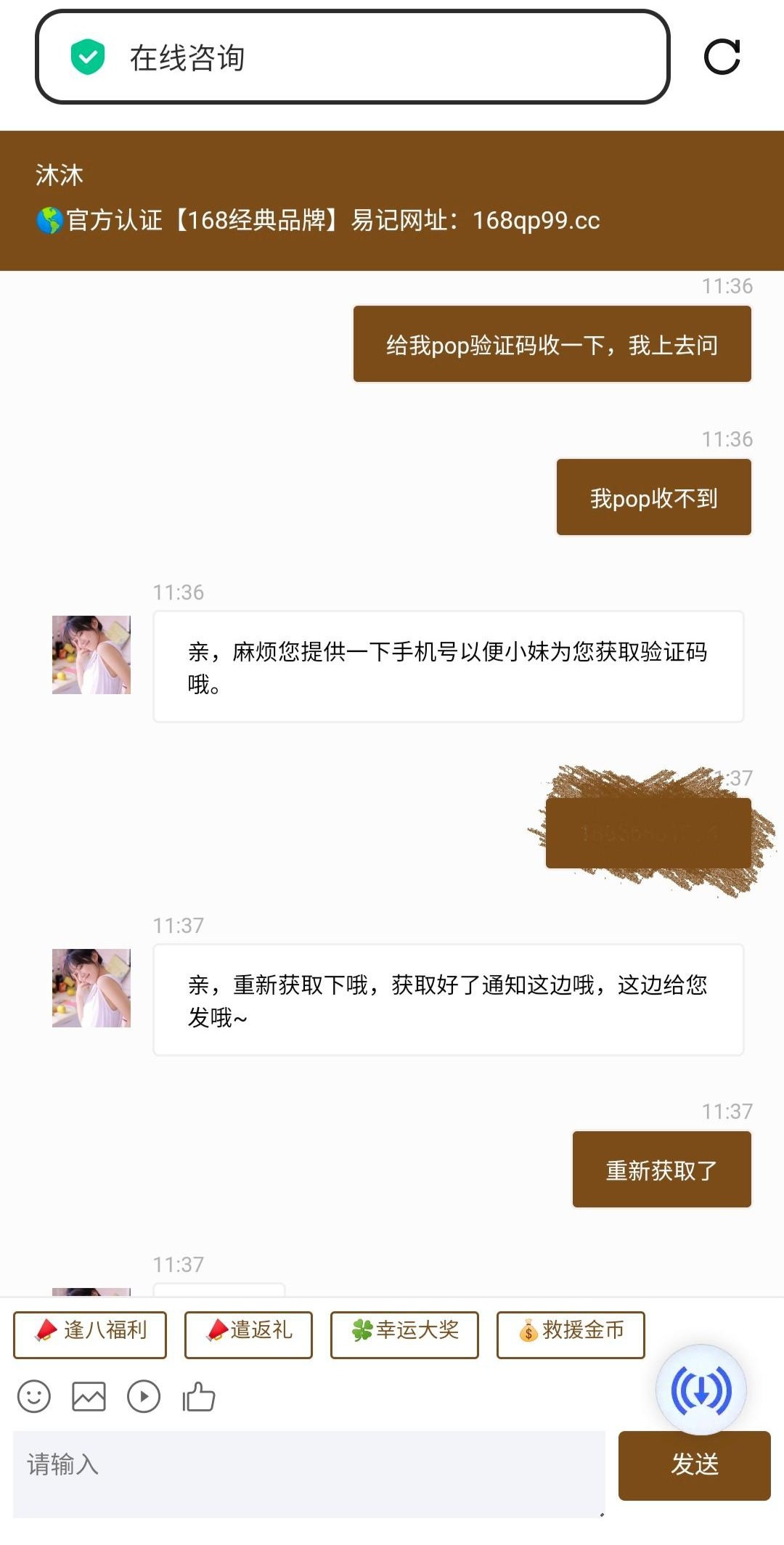 168棋牌客服可以收到验证码网址168qp99.cc 上去就找他要验证码百分百不给,会让充值,所以要注意话术,忽悠!亲测百分百有效果!最好注册个新的168棋牌账号!