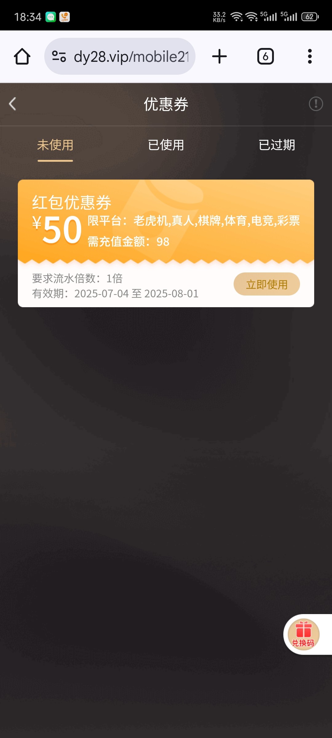 要一个月及以上未活跃的会员登录才有,vip1以上,有符合的去看看,领了38,打死了链接 dy28.vip