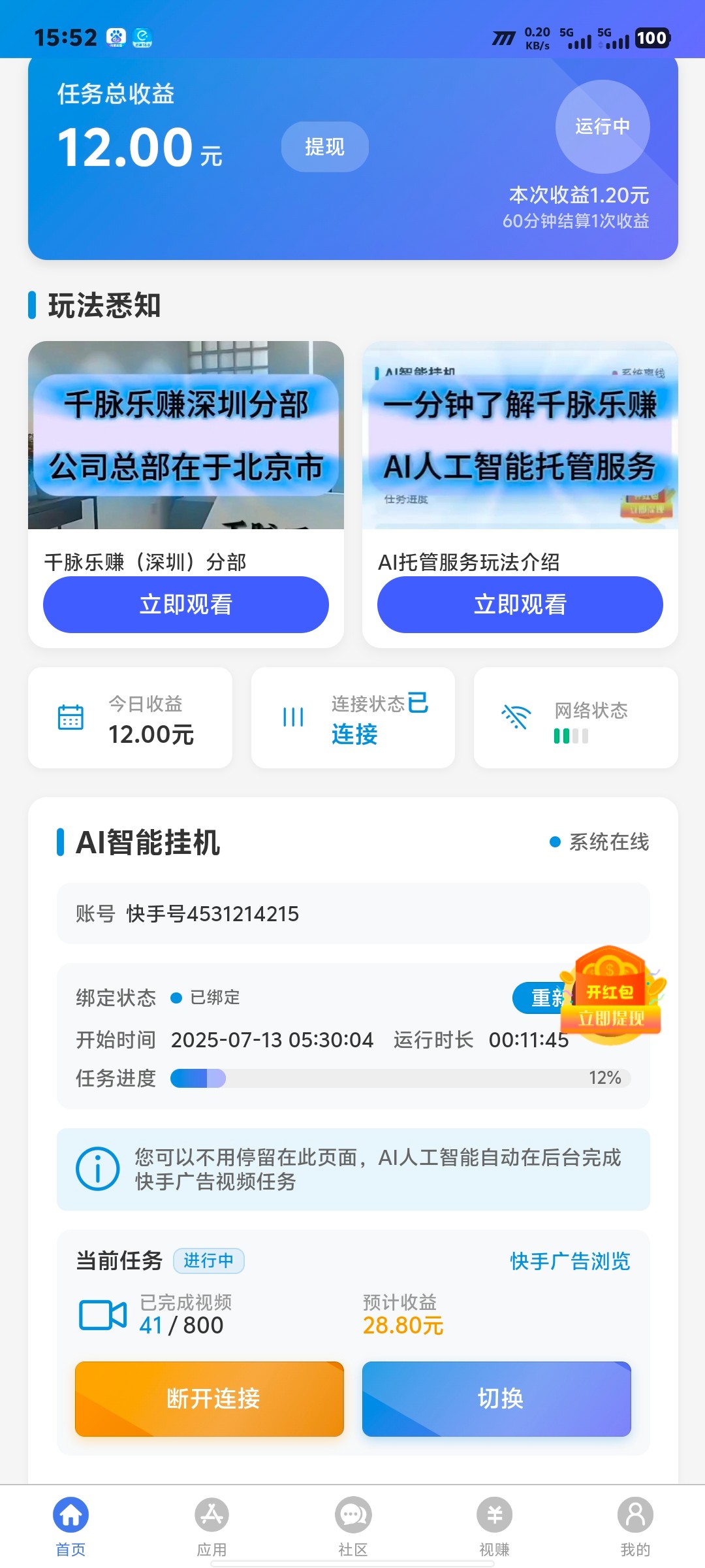 自动挂机快手开始任务,每天28.8可以看视频也可以评论看视频+7.5评论+8,仅白嫖!