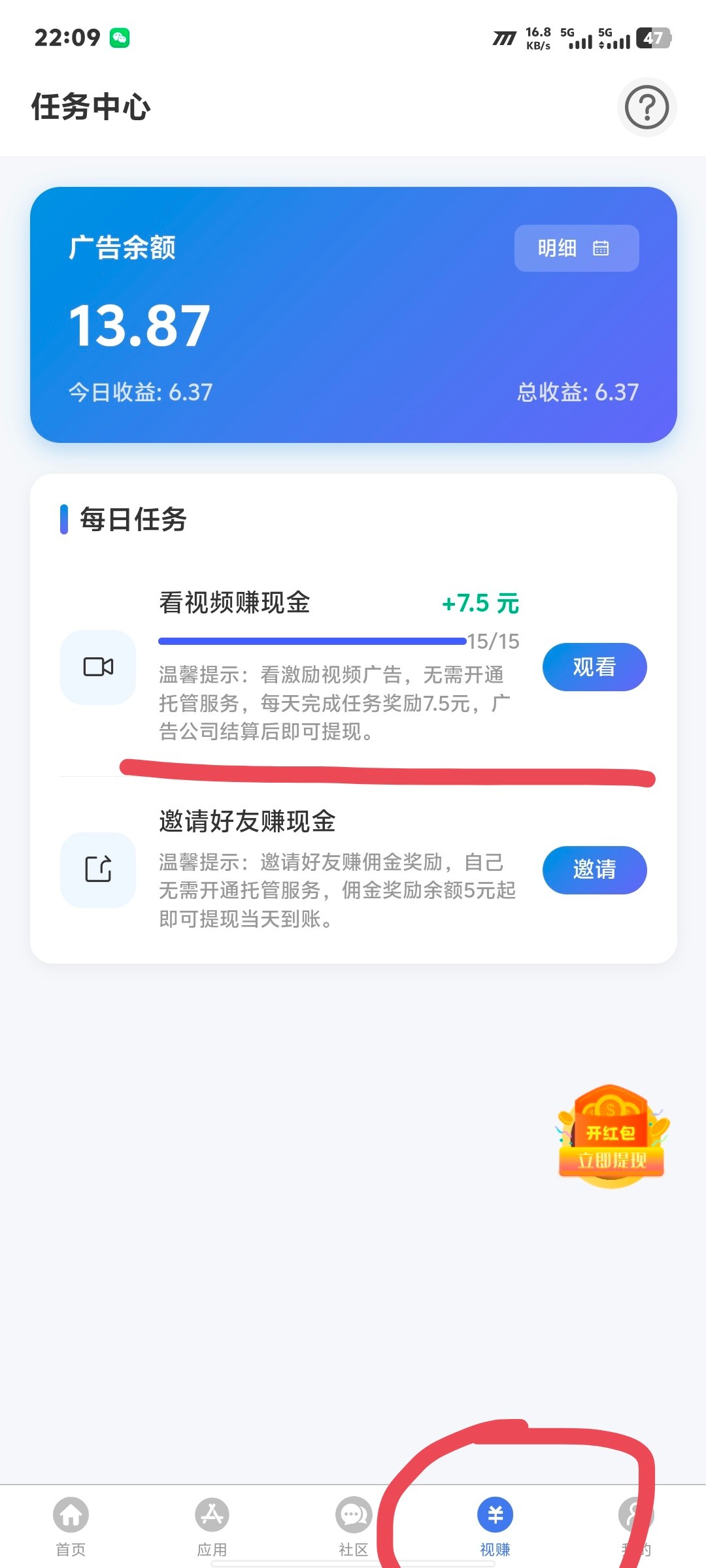 我tm还以为看完那15个广告可以提5米,谁知道去看完了要tm50起提