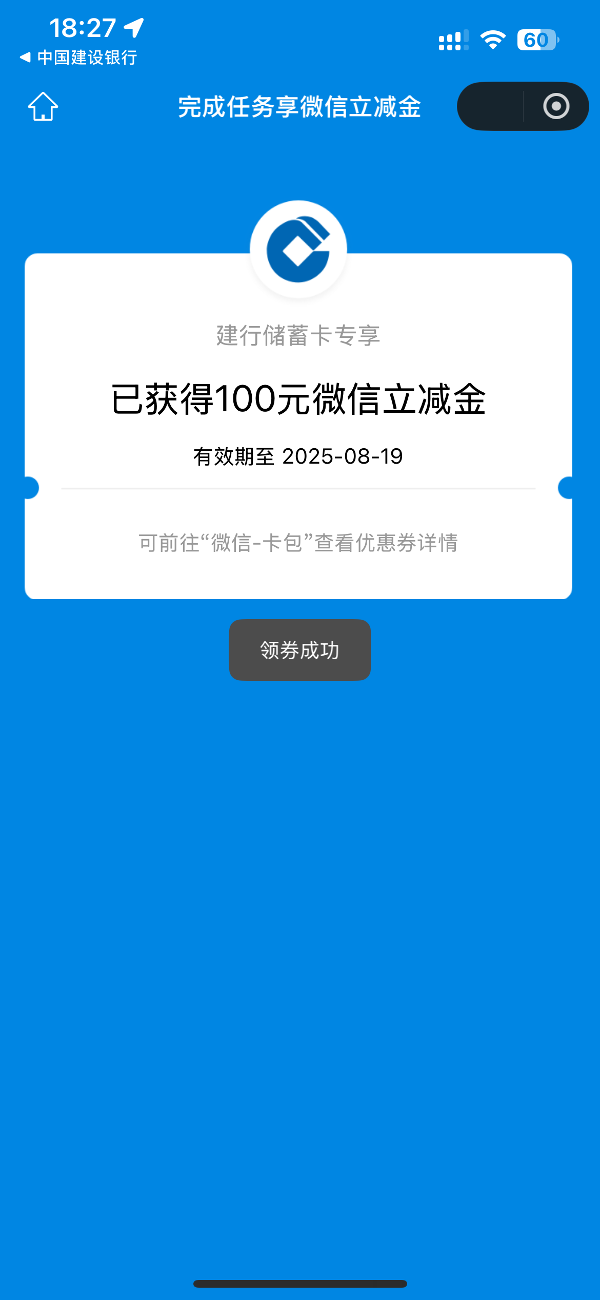 【建设银行卡】—100立减金