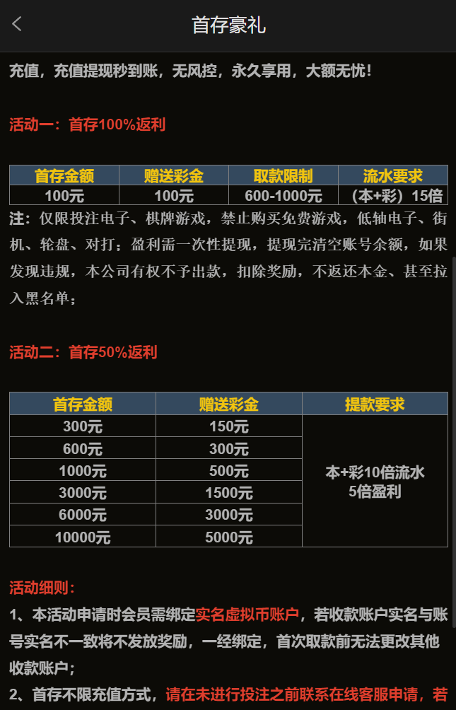 活动一100%✅:100+100⚜️本彩15倍⚜️限制提款600-1000