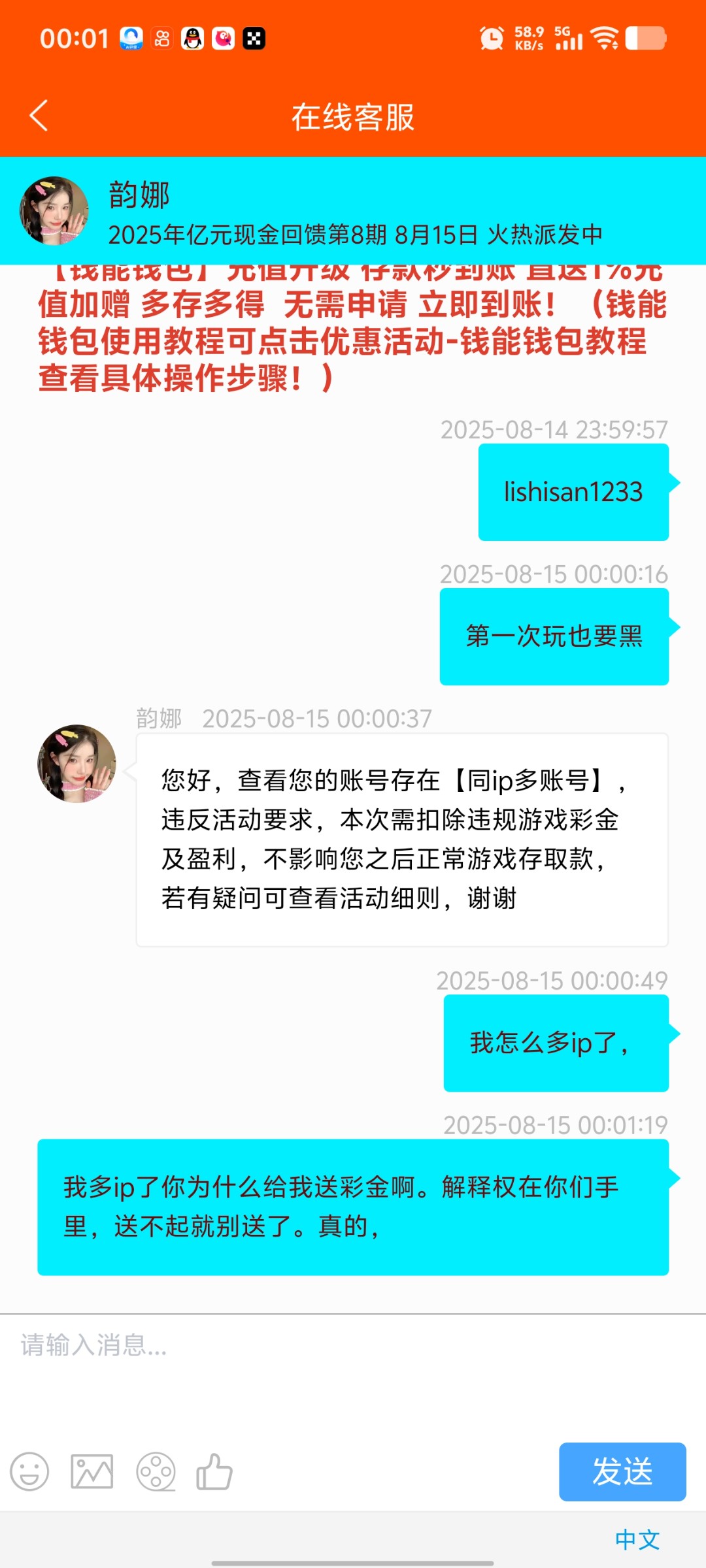 大家一定注意别玩这个台子,玩不起各种借口刁难你。既然是多ip为什么送彩金呢,说话牛头不对马嘴的。我朋友充钱打有时候都要罚流水,趁早倒闭吧,真他么黑