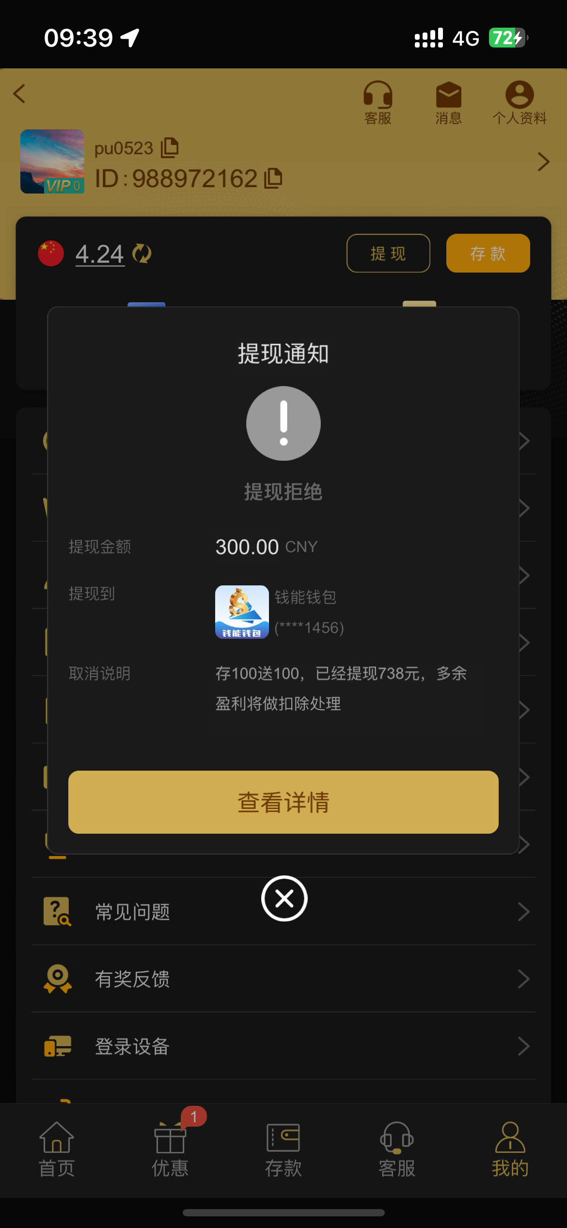 @kkk009 ,没有提现退回了说要充同等金额