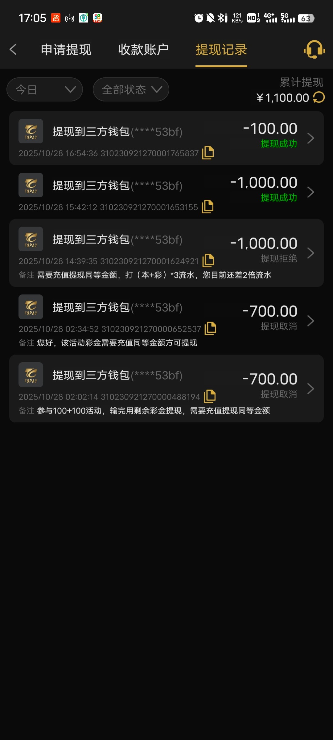 是不是被扣了 我也是反水上1700