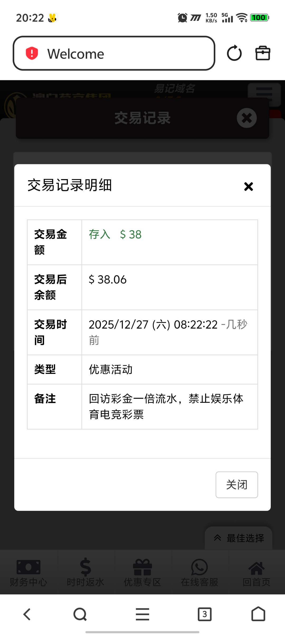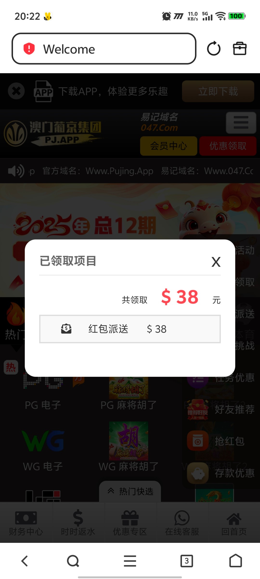无聊的时候打开浏览器保存的链接,发现有个回访彩金,这台子好像就充过50,有号的可以上去看看,地址047.com
