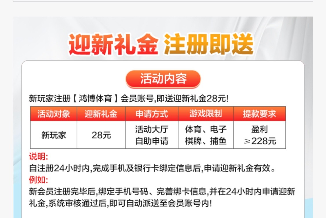 新用户注册绑卡,1小时内自动派送28注册彩金,228即可提现,查IP