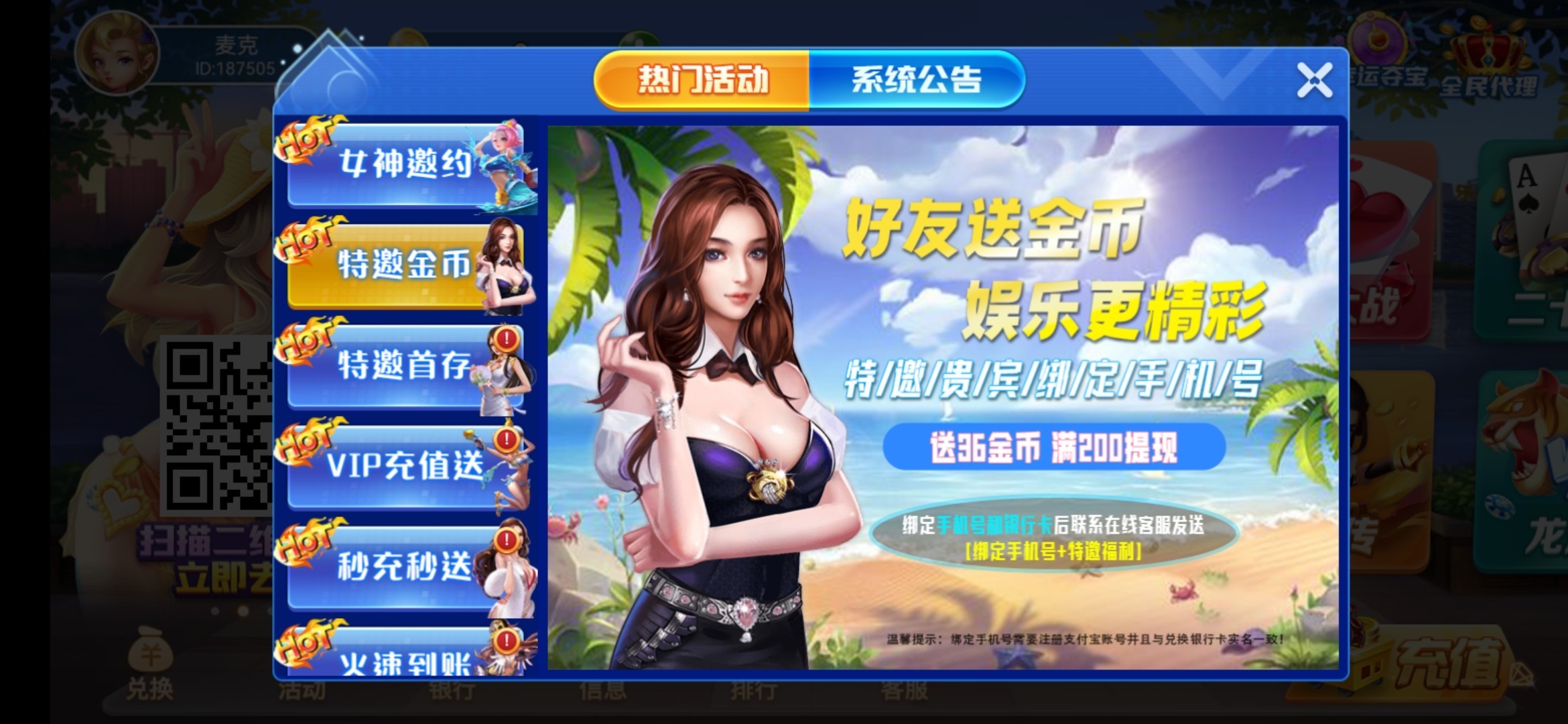 好友娱乐复活了,绑定手机找客服36 两百提