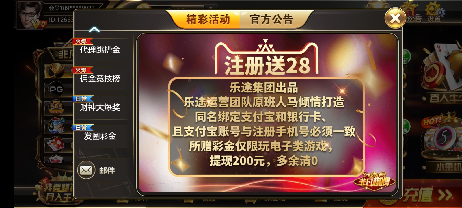 注册绑定支付宝银行卡送28,联系客服申请,每天限5000人,活动时间10点-22点