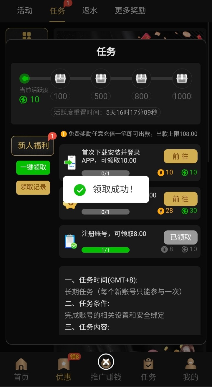 注册领8,下载领10现在快去一会黄了不然,还有个入驻彩金自己去试试
