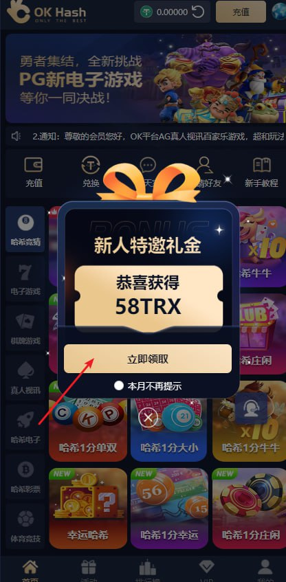 1.     注册官网申请58TRX投注体验金(需完成操作)