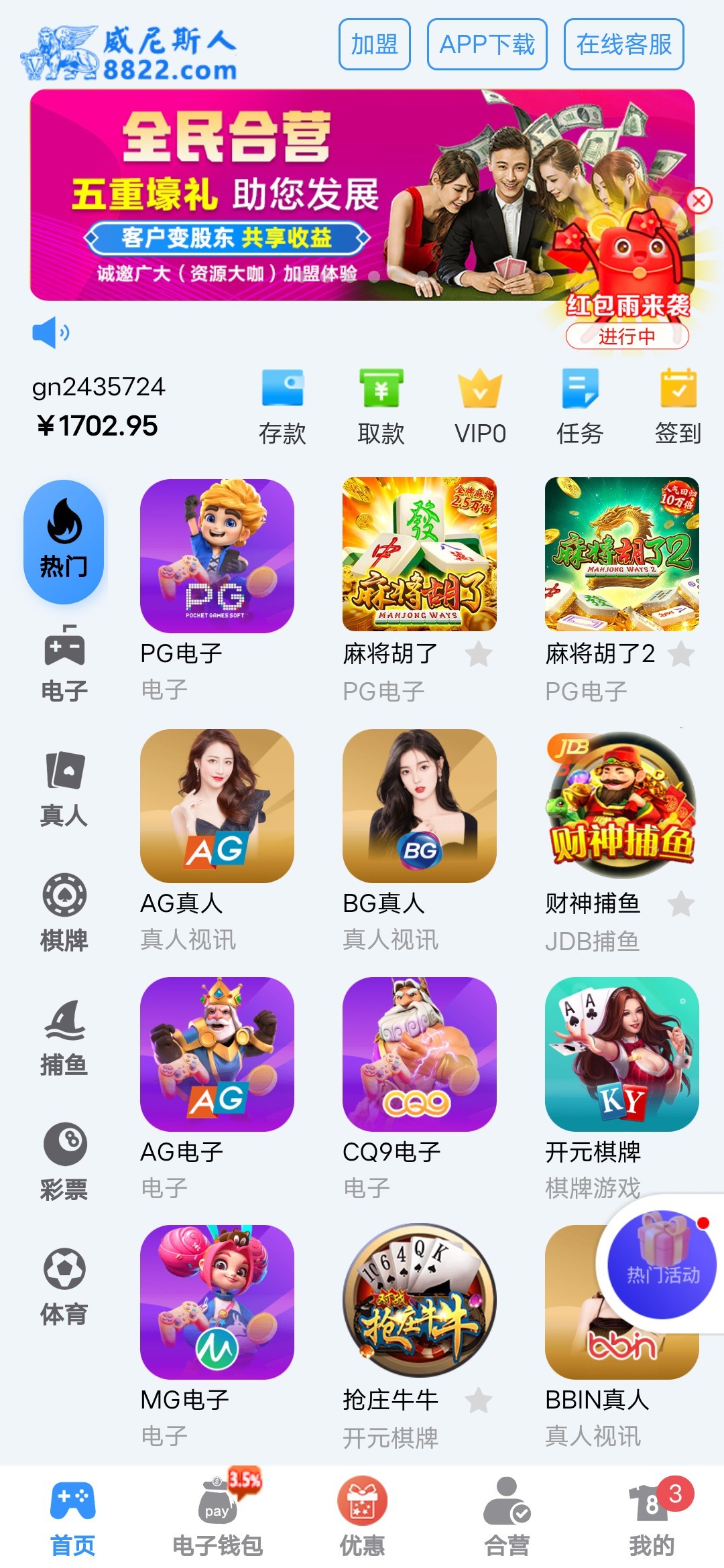 每日签到7块以上,每小时还有整点红包抢,出款已经测试,白嫖勿充值。