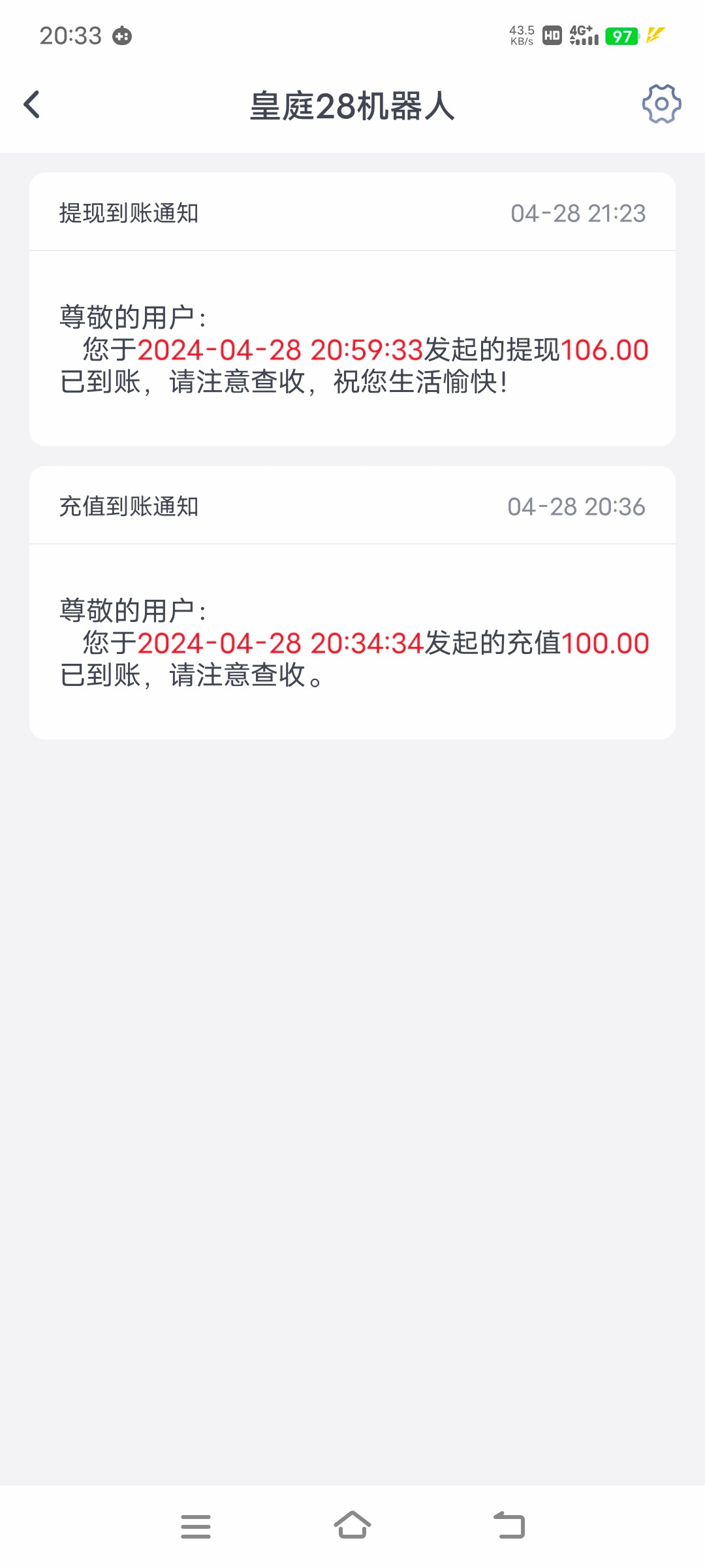 皇庭提款不到账的,下方留言ID