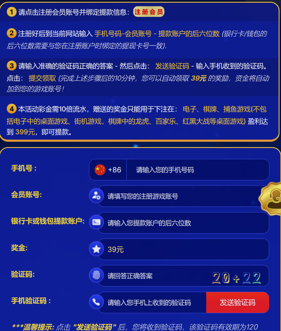 特邀碰瓷,常用手机号码注册绑定手机号码,领取39元,出款自测,禁止充值!