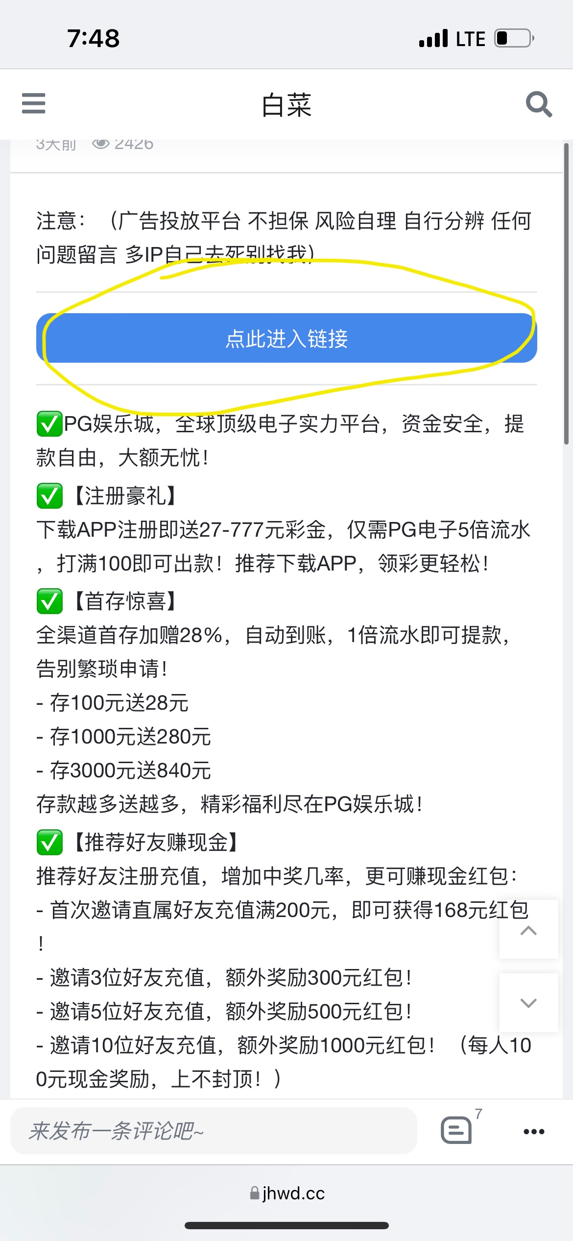 注意:(广告投放平台 不担保 风险自理 自行分辨 任何问题留言 多IP自己去死别找我)