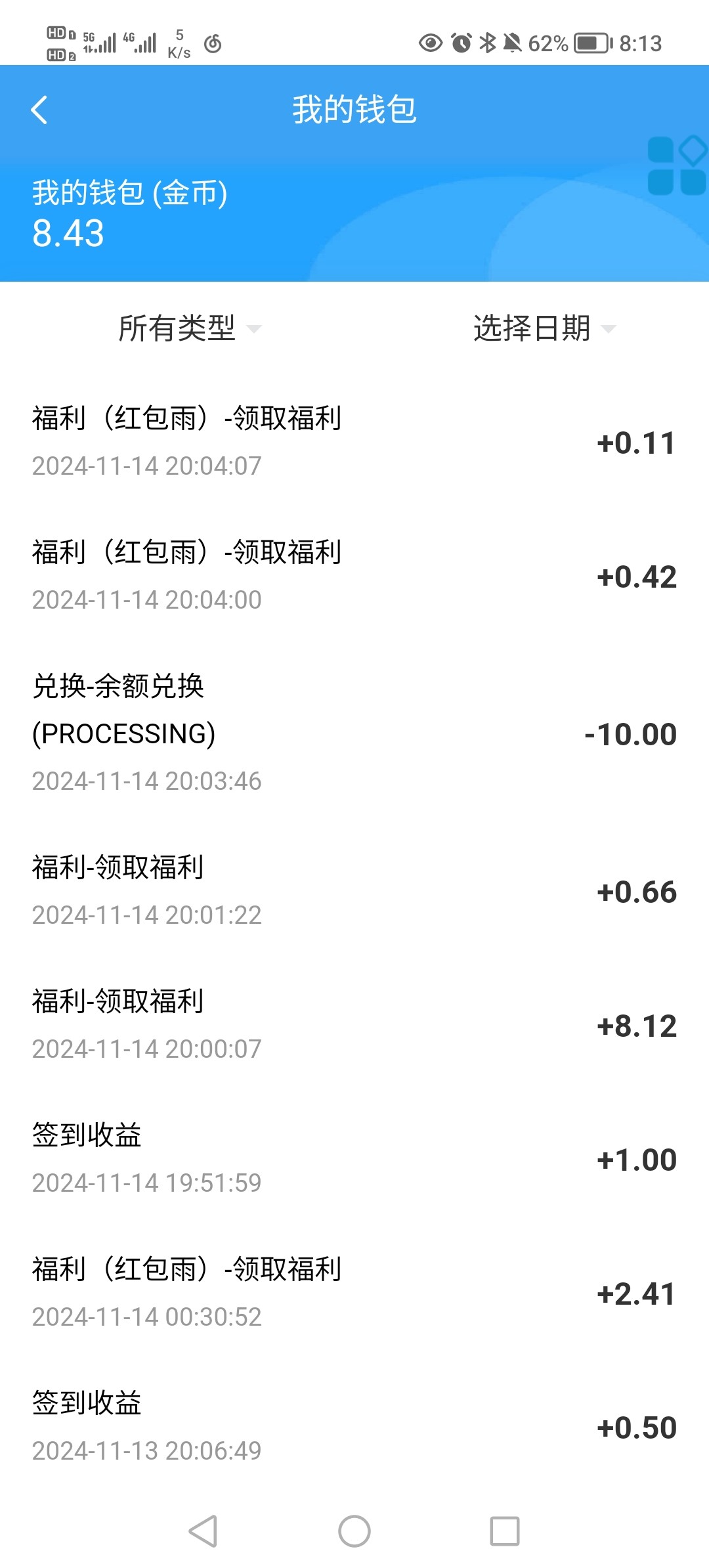 晚上八点抢红包,每个包好几块,一天可以抢三次,满10可以提到游戏平台,每天签到也送一块。